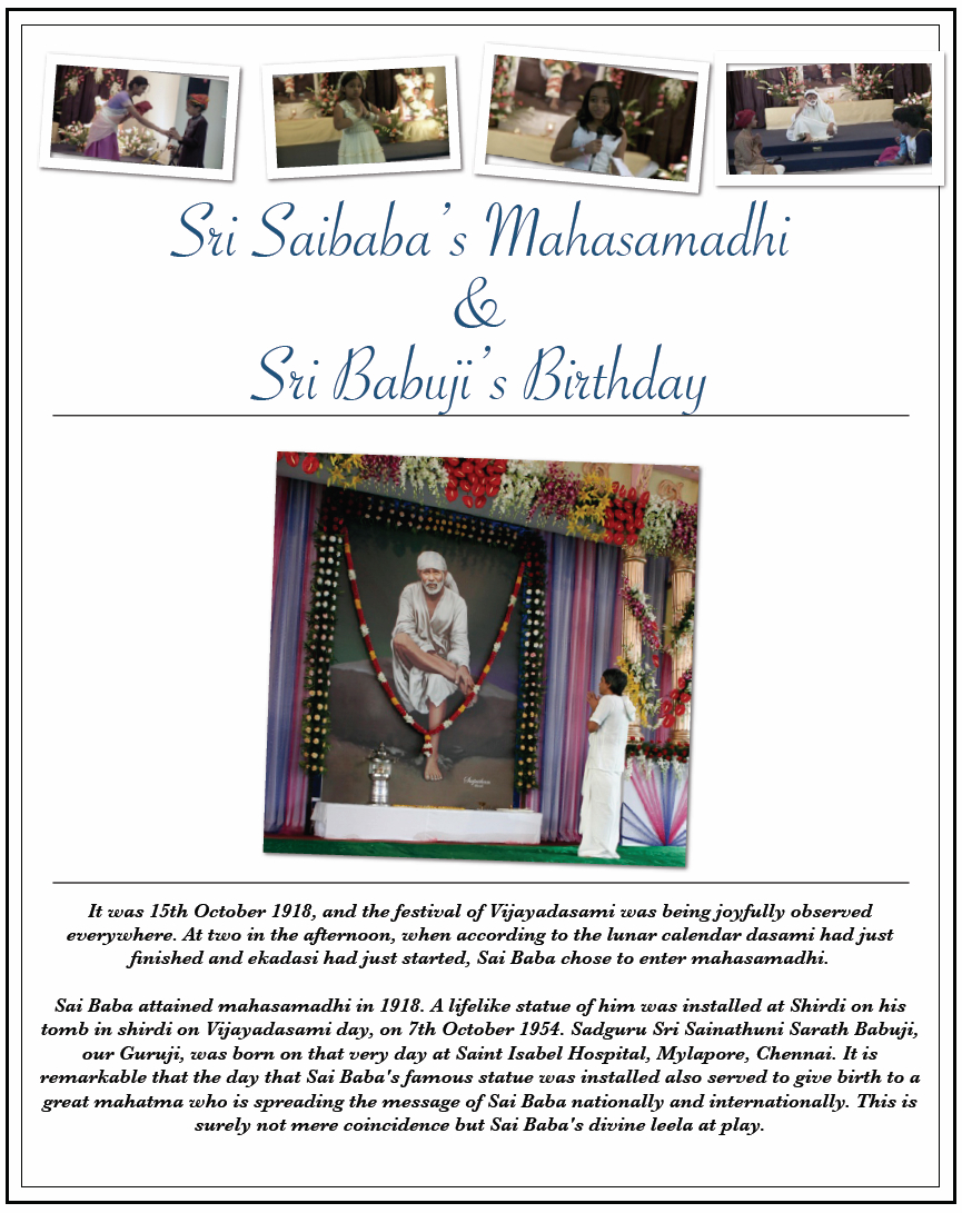 / Saibaba's mahasamadhi & Babuji's Birthday